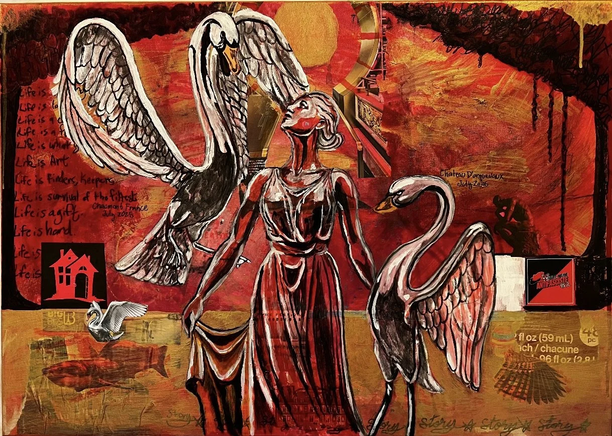 All pieces are magazines and glue on canvas. No mixed media unless otherwise noted**